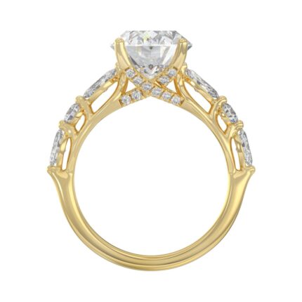 Elegant 14K Yellow Gold Bridal Fancy Ring for Ladies 3 3/4CT Round & Marquise& Oval Cut Diamonds 3.00CT Oval Center stone (Color F-G -Clarity
