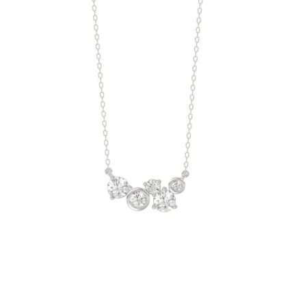 Elegant Ladies 14K White Gold 1/2Ct Round Lab Grown Five Stone Diamond Fancy Bezel Set Necklace (Color F-G -Clarity Vs1/Vs2)