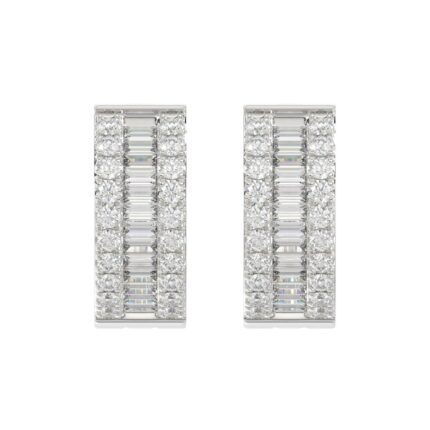 LADIES HOOP EARRINGS 3/8CT ROUND/BAGUETTE DIAMOND 14K WHITE GOLD