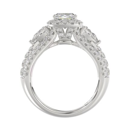 Ladies 14K White Gold 3 1/2CT Featuring Fashion Ring with Round, Pear & Cushion Diamond 2.00CT Cushion Center stone (Color F-G -Clarity VS1/VS2)