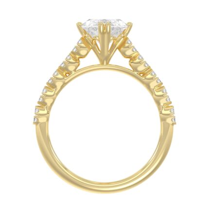 Ladies 14K Yellow Gold ladies Ring Featuring Round, Half-Moon & Baguette Diamonds 3.00CT Oval Center stone (Color F-G -Clarity VS1/VS2)