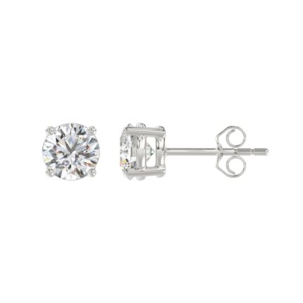 LADIES SOLITAIRE EARRINGS 2CT ROUND DIAMOND 14K WHITE GOLD