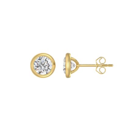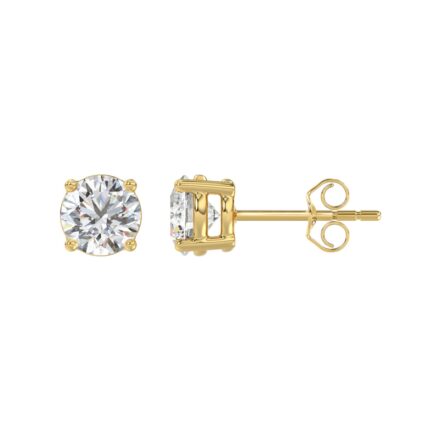 LADIES SOLITAIRE EARRINGS 2CT ROUND DIAMOND 14K YELLOW GOLD