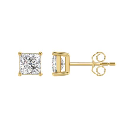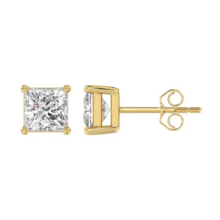 LADIES SOLITAIRE EARRINGS 2CT PRINCESS DIAMOND 14K YELLOW GOLD