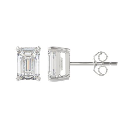 LADIES SOLITAIRE EARRINGS 3CT EMERALD DIAMOND 14K WHITE GOLD
