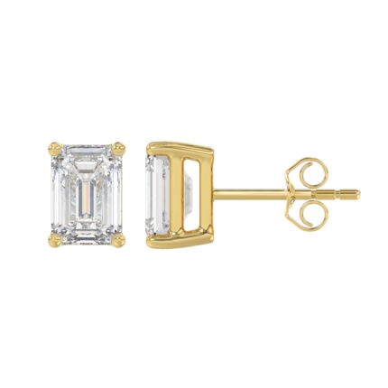 LADIES SOLITAIRE EARRINGS 3CT EMERALD DIAMOND 14K YELLOW GOLD