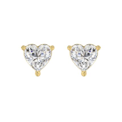 LADIES SOLITAIRE EARRINGS 3CT HEART DIAMOND 14K YELLOW GOLD