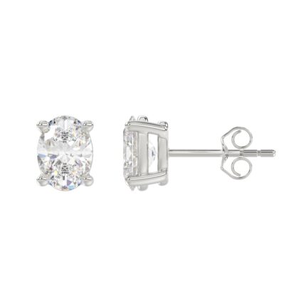 LADIES SOLITAIRE EARRINGS 3CT OVAL DIAMOND 14K WHITE GOLD