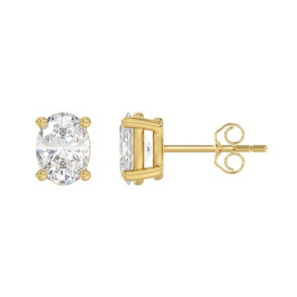 LADIES SOLITAIRE EARRINGS 3CT OVAL DIAMOND 14K YELLOW GOLD (CENTER STONE OVAL DIAMOND 1 1/2CT )