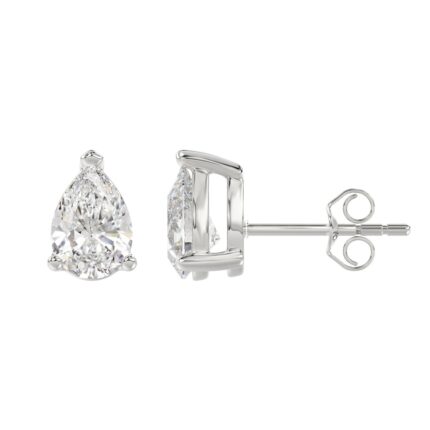 LADIES SOLITAIRE EARRINGS 3CT PEAR DIAMOND 14K WHITE GOLD