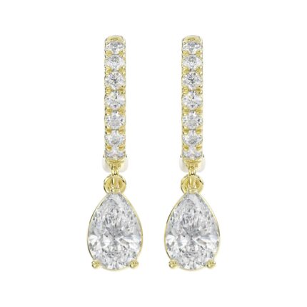 LADIES EARRINGS 1 1/4CT PEAR/ROUND DIAMOND 14K YELLOW GOLD (CENTER STONE PEAR DIAMOND 1CT)