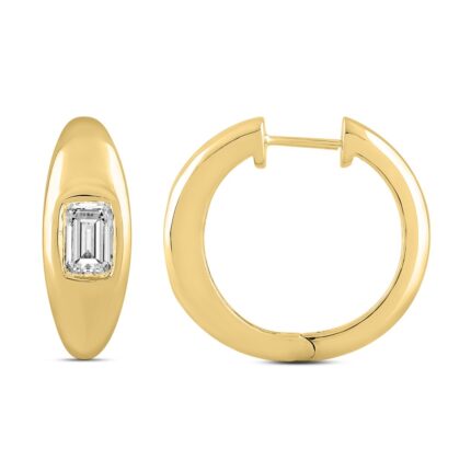 LADIES HOOP EARRINGS 2CT EMERALD DIAMOND 14K YELLOW GOLD
