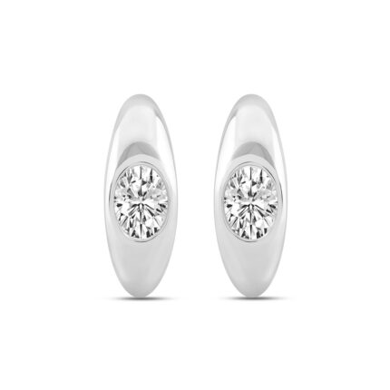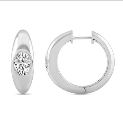 LADIES HOOP EARRINGS 1CT ROUND DIAMOND 14K WHITE GOLD