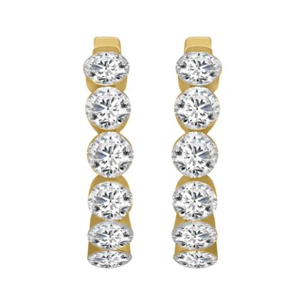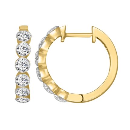 LADIES HOOP EARRINGS 1 3/4CT ROUND DIAMOND 14K YELLOW GOLD
