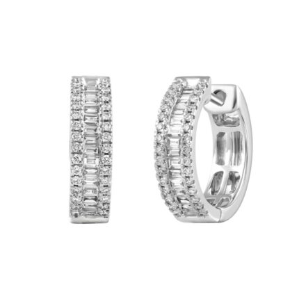 LADIES HOOP EARRINGS 1/2CT ROUND/BAGUETTE DIAMOND 14K WHITE GOLD