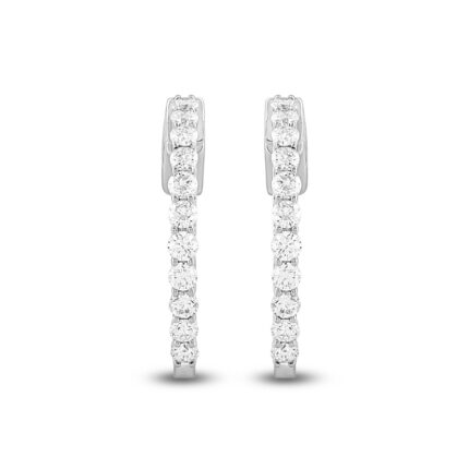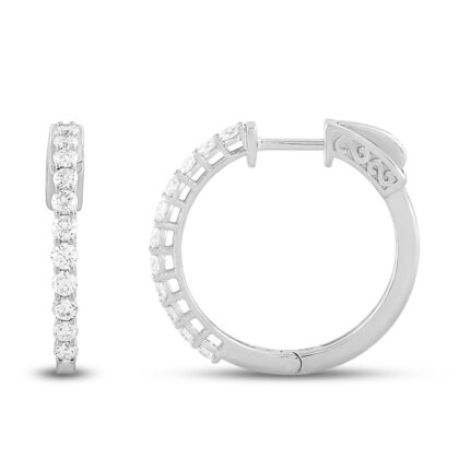 LADIES HOOP EARRINGS 1 1/2CT ROUND DIAMOND 14K WHITE GOLD