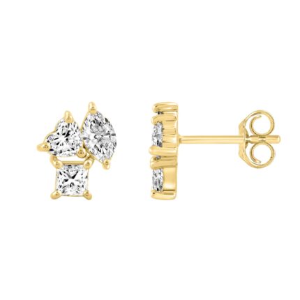 LADIES EARRINGS 1 1/5CT PRINCESS/MARQUISE/HEART DIAMOND 14K YELLOW GOLD