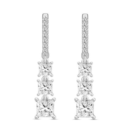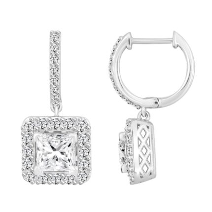LADIES EARRINGS 2CT ROUND/PRINCESS DIAMOND 14K WHITE GOLD