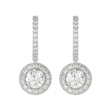 LADIES EARRINGS 3CT ROUND DIAMOND 14K WHITE GOLD (CENTER STONE ROUND DIAMOND 2CT )