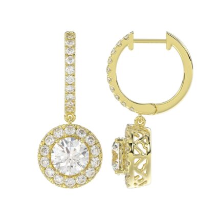 LADIES EARRINGS 3CT ROUND DIAMOND 14K YELLOW GOLD (CENTER STONE ROUND DIAMOND 2CT )