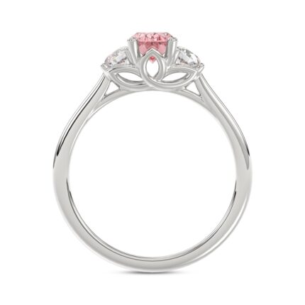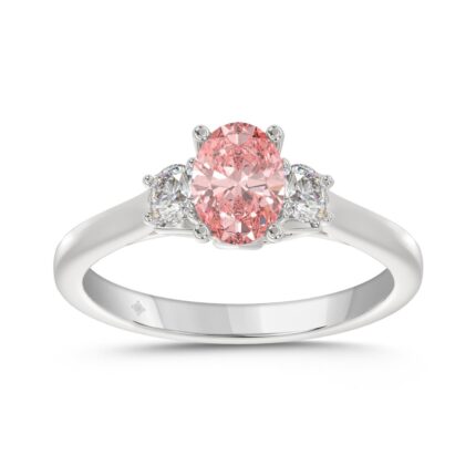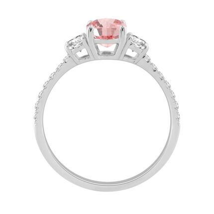 Ladies 14K White Gold 1 1/4CT Round/Oval Lab-Grown Diamond Ladies Fashion Ring 1.00CT Pink Oval Center stone (Color F-G -Clarity VS1/VS2)