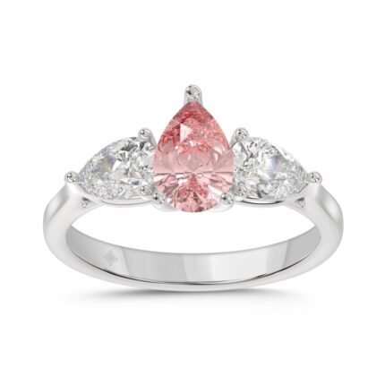 ETERNAL BLUSH COLLECTION 14K WHITE GOLD 2.00CT PINK PEAR/PEAR DIAMOND LADIES RING (CENTER STONE PINK PEAR DIAMOND 1CT)
