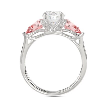 ETERNAL BLUSH COLLECTION 14K WHITE GOLD 3 1/6CT PINK CUSHION/PEAR DIAMOND LADIES RING (CENTER STONE PINK CUSHION DIAMOND 2CT)