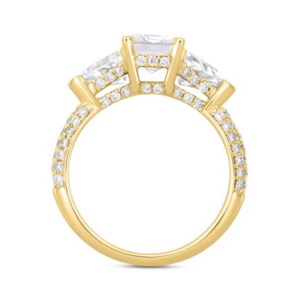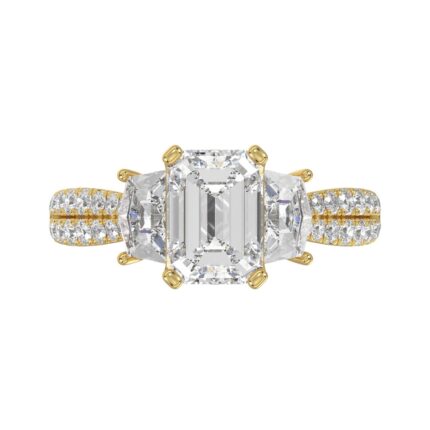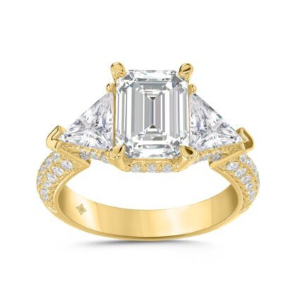 LADIES RING 3 1/2CT ROUND/EMERALD/TRILLION DIAMOND 14K YELLOW GOLD (CENTER STONE EMERALD DIAMOND 2CT )