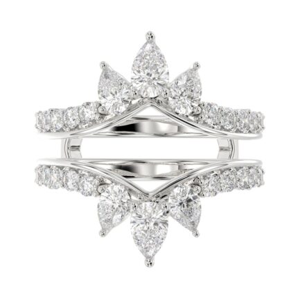 LADIES ENHANCERS RING 1 3/4CT ROUND/PEAR/DIAMOND 14K WHITE GOLD
