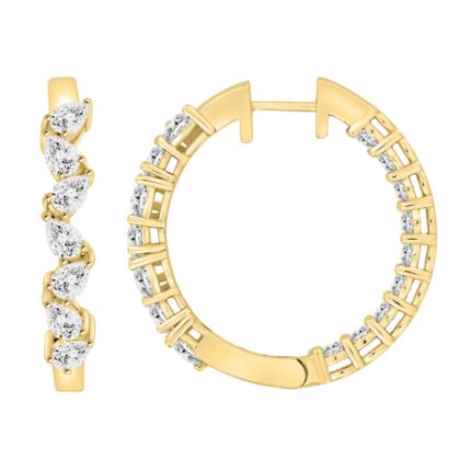 LADIES HOOP EARRINGS 4 3/4CT PEAR/ROUND DIAMOND 14K YELLOW GOLD