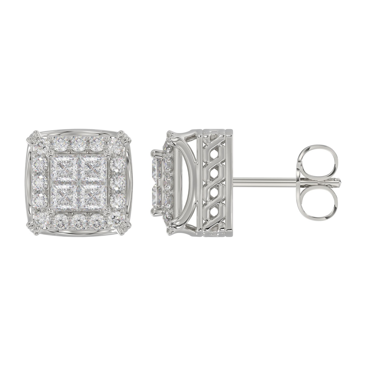 10K WHITE GOLD 2.00CT PRINCESS DIAMOND LADIES EARRINGS