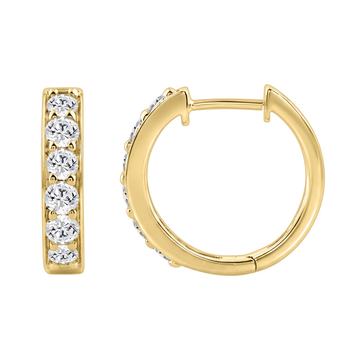 10K YELLOW GOLD 1.00CT ROUND DIAMOND LADIES HOOP EARRING