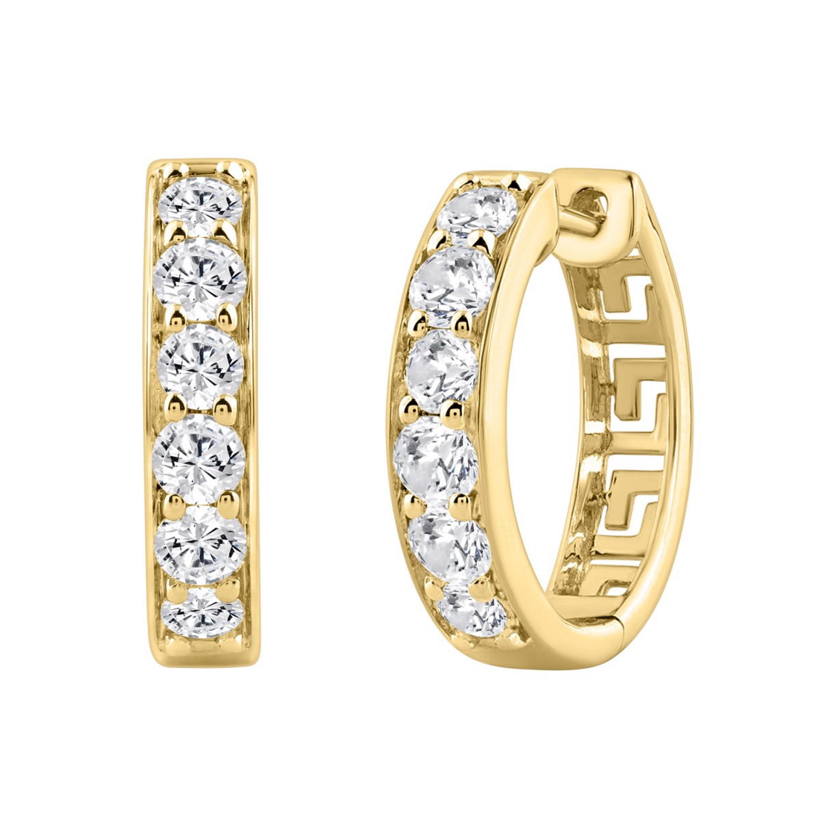 LADIES HOOP EARRINGS 1.50CT ROUND DIAMOND 14K YELLOW GOLD