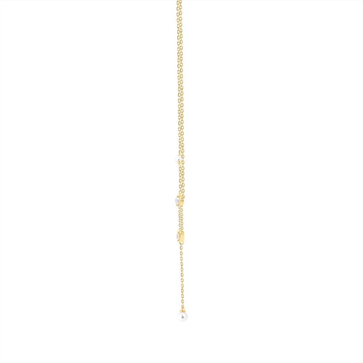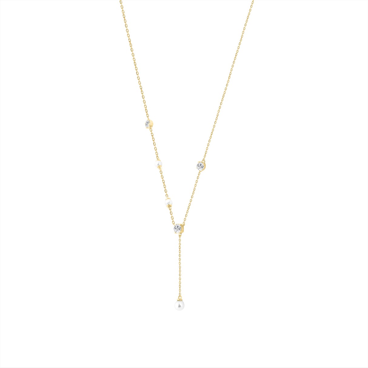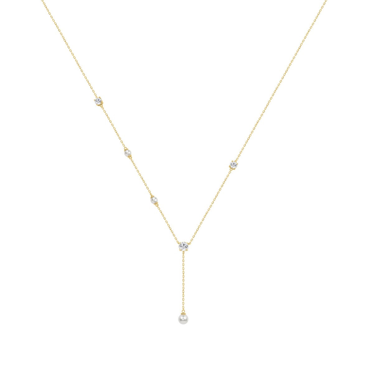 10K Yellow Gold Diamond & Pearl Necklace For Ladies 1/2Ct Round Diamond Elegant Drop Necklace, Classic Fine Jewelry (Color F-G -Clarity Vs1/Vs2)