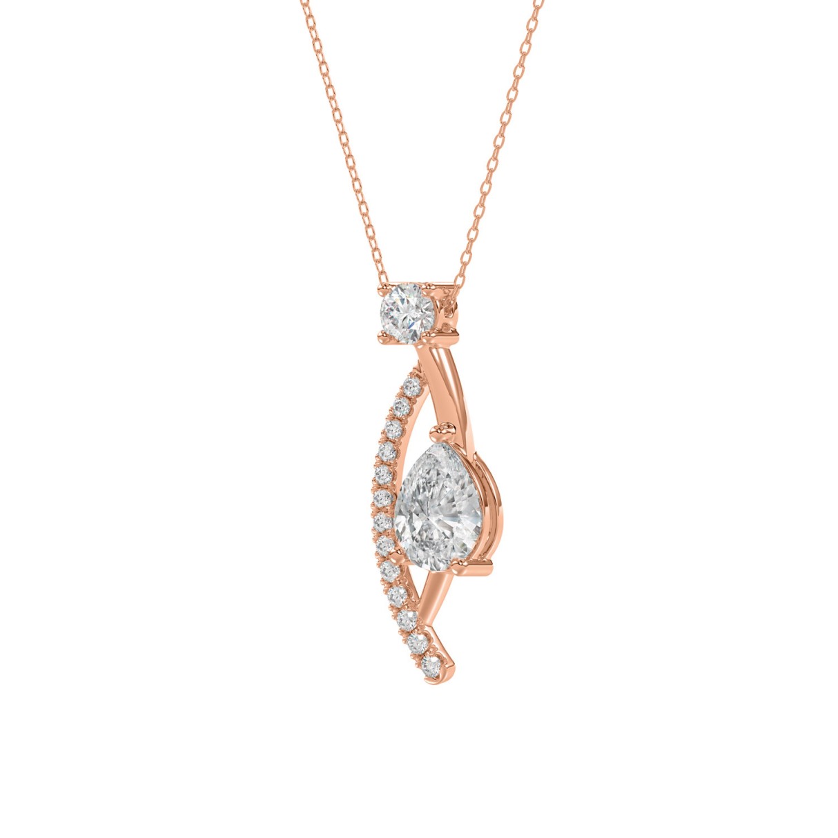 14K ROSE GOLD 1.00CT ROUND/PEAR DIAMOND LADIES PENDANT