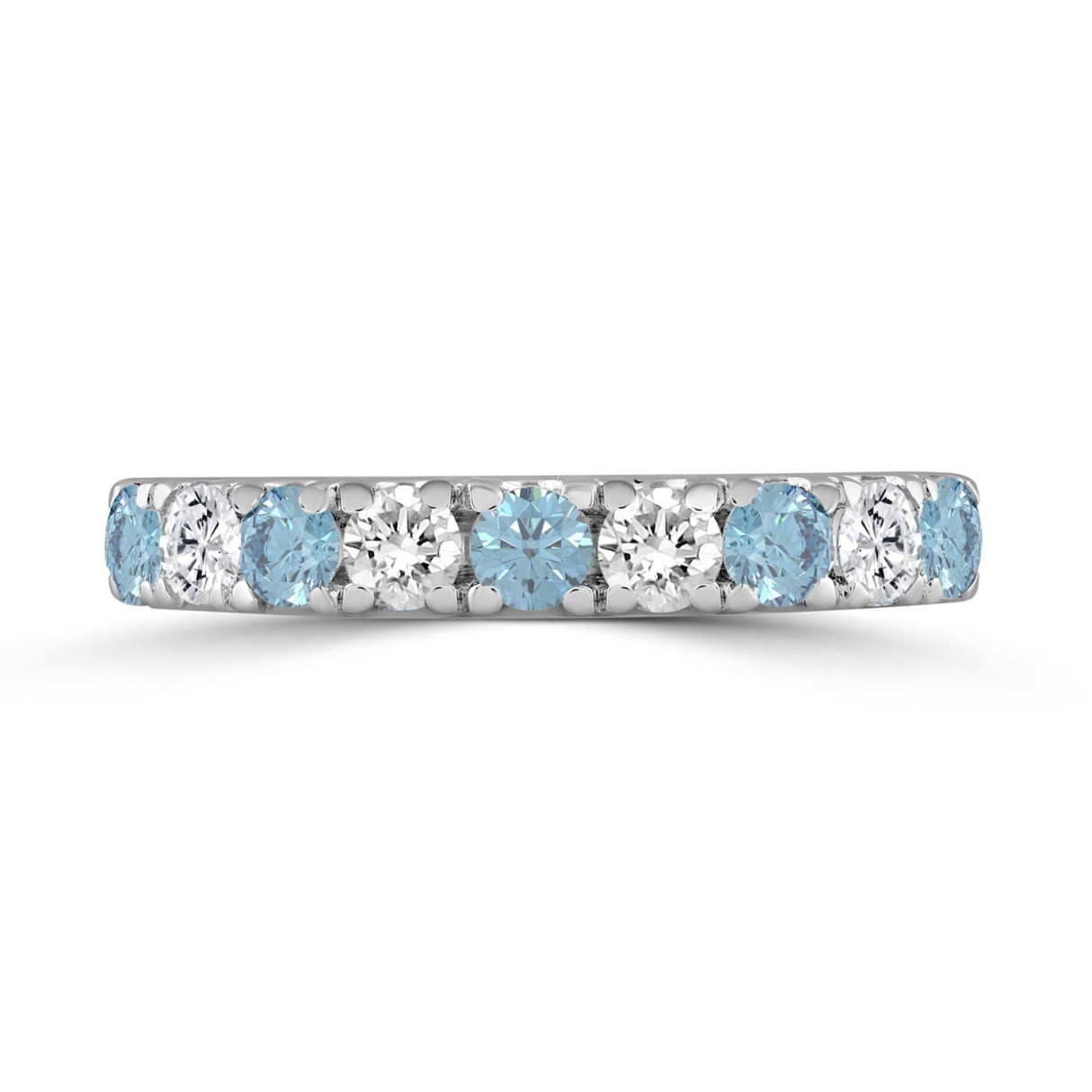 14K White Gold 1.00 CT Round Blue & White Diamond Alternating Band Ring
