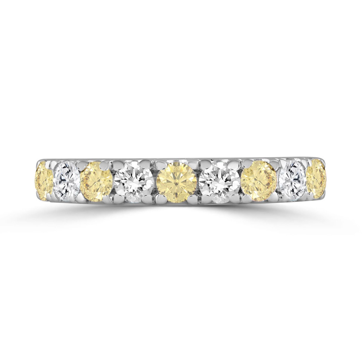 14K White Gold 1.00 CT Round Yellow & White Diamond Alternating Band Ring