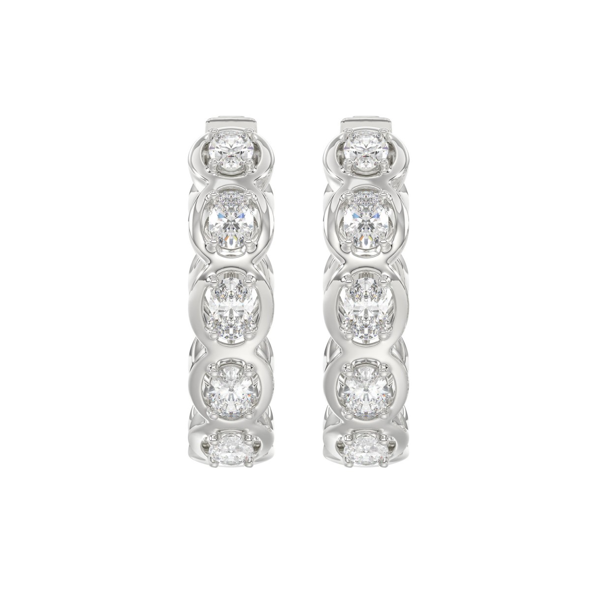 14K WHITE GOLD 1.00CT OVAL DIAMOND HOOP EARRINGS
