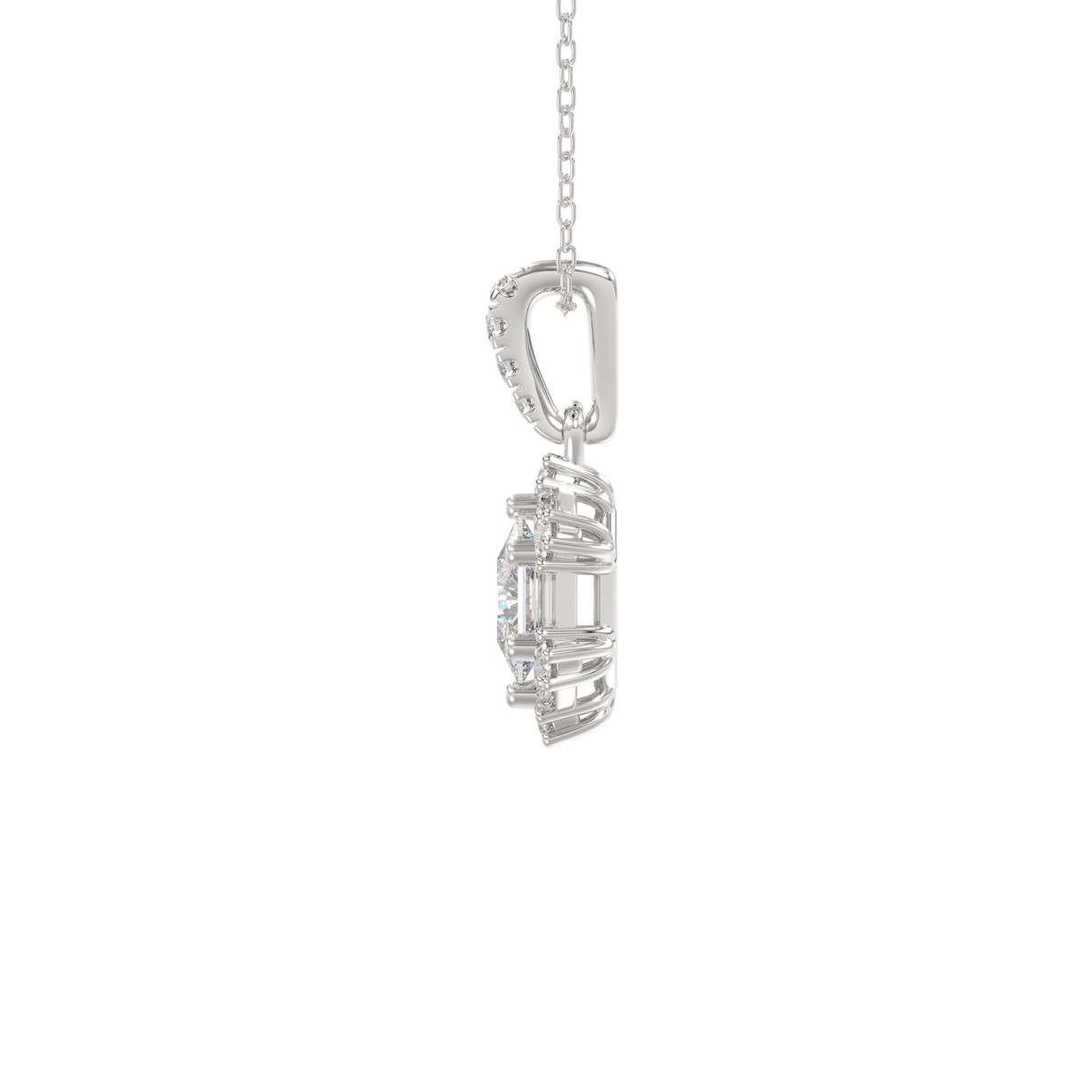 14K WHITE GOLD 1.00CT ROUND/BAGUETTE/HEZAGON STEP CUT DIAMOND LADIES PENDANT