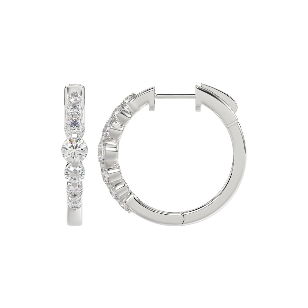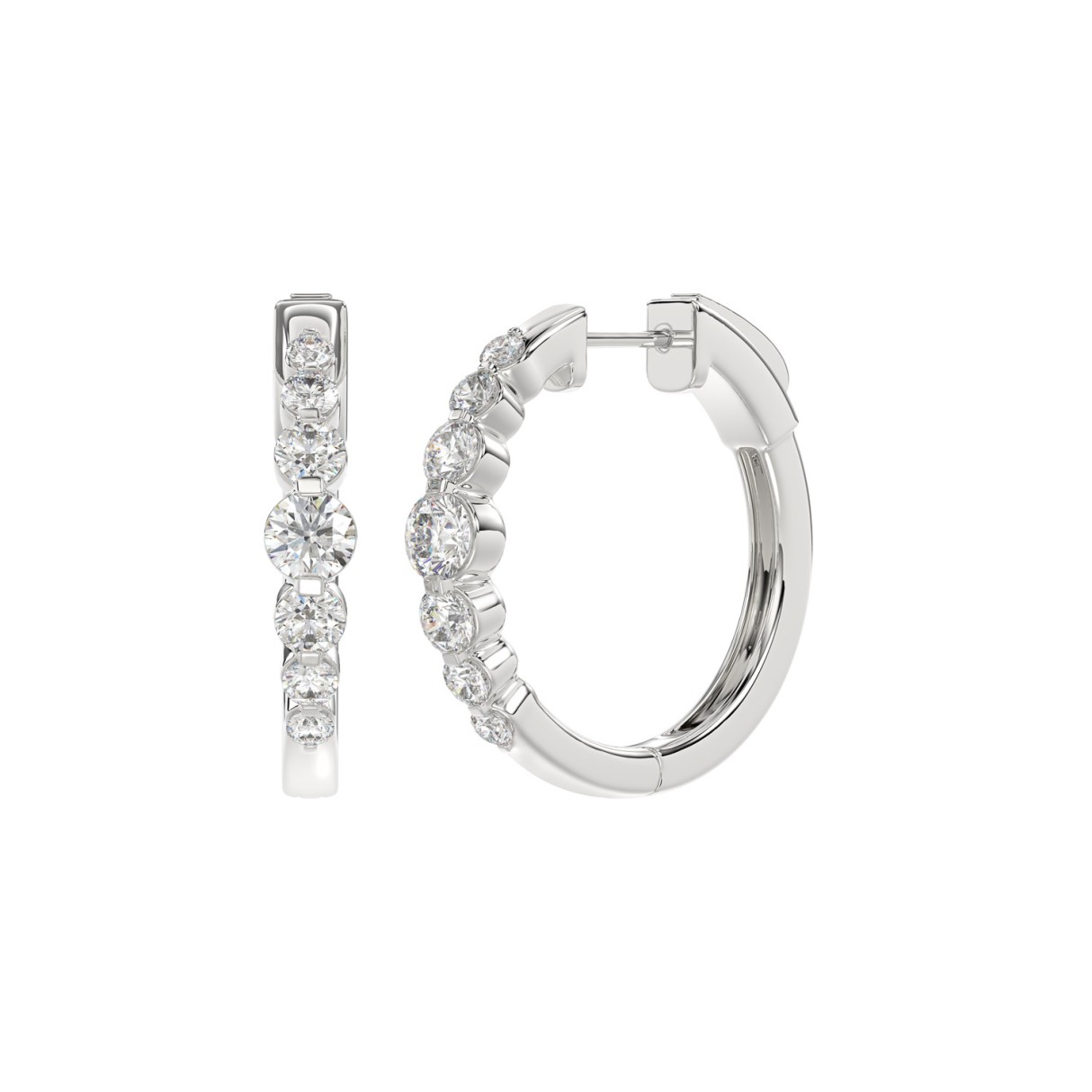 14K WHITE GOLD 1.00CT ROUND DIAMOND LADIES HOOPS EARRINGS