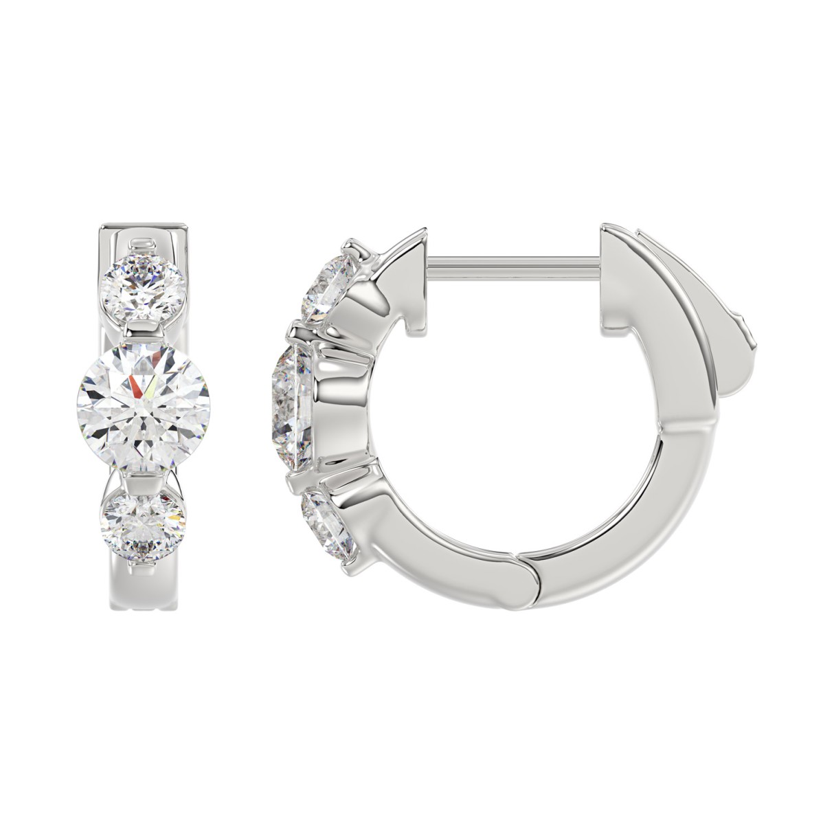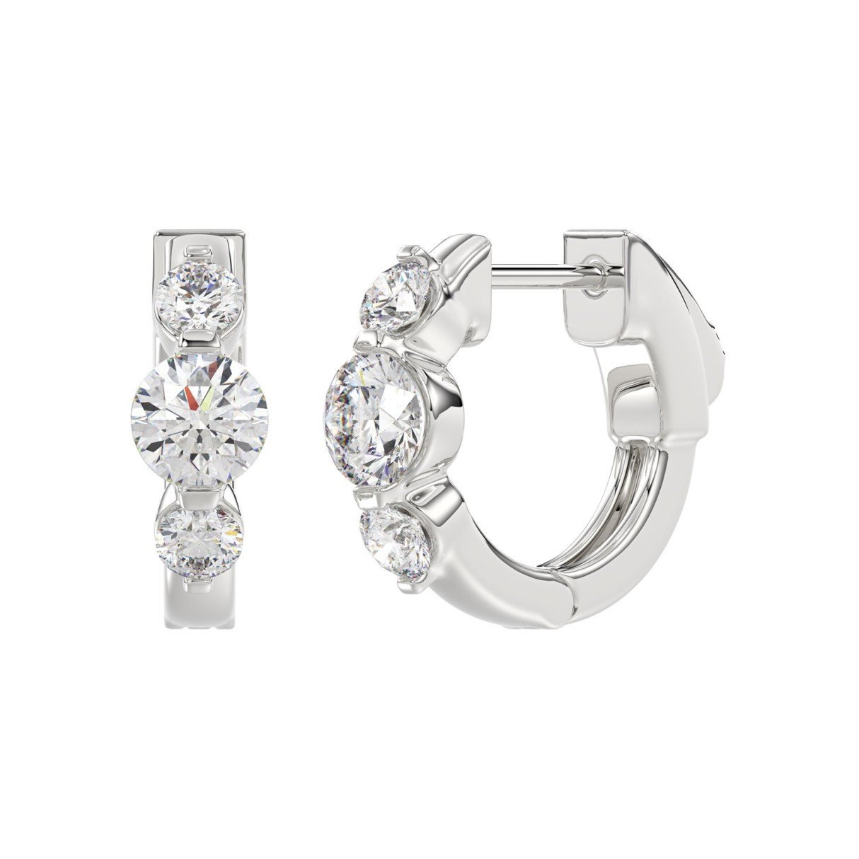 LADIES HOOP EARRINGS 1.25CT ROUND DIAMOND 14K WHITE GOLD