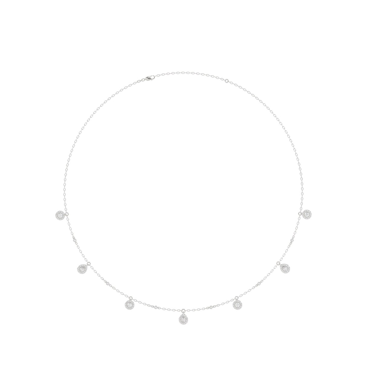 LADIES NECKLACE WITH CHAIN 3 1/2CT ROUND/PEAR/OVAL/COUSHION/EMERALD DIAMOND 14K WHITE GOLD