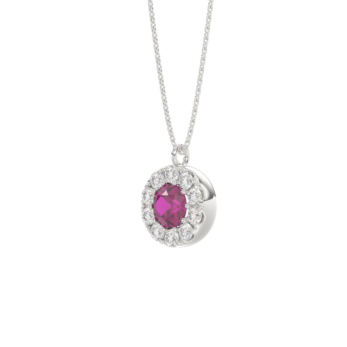 14K WHITE GOLD 1.00CT ROUND/ROUND RUBY DIAMOND LADIES PENDANT (CENTER STONE ROUND RUBY DIAMOND 5/8CT)
