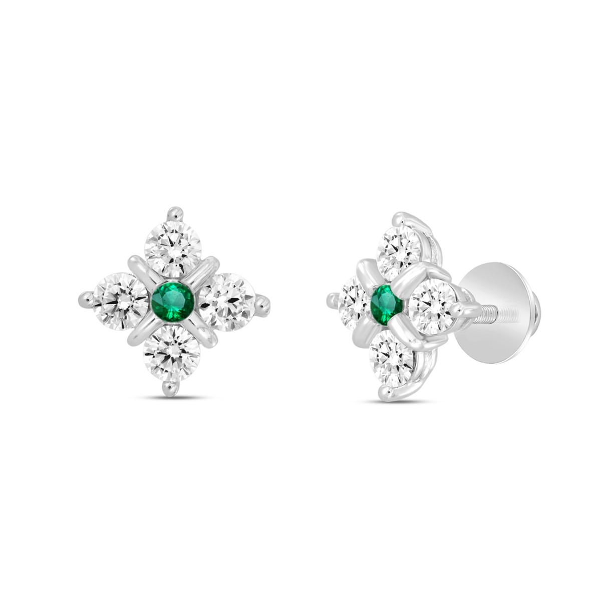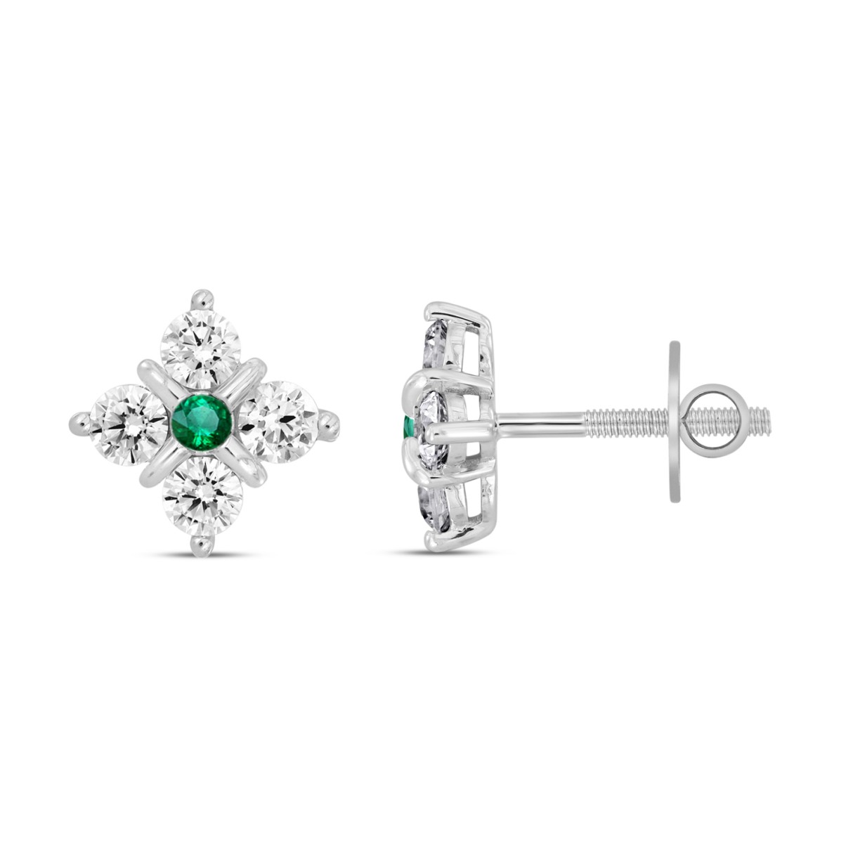 14K WHITE GOLD 1 1/2CT ROUND DIAMOND LADIES EARRINGS (GREEN EMERALD ROUND 2 STONE)