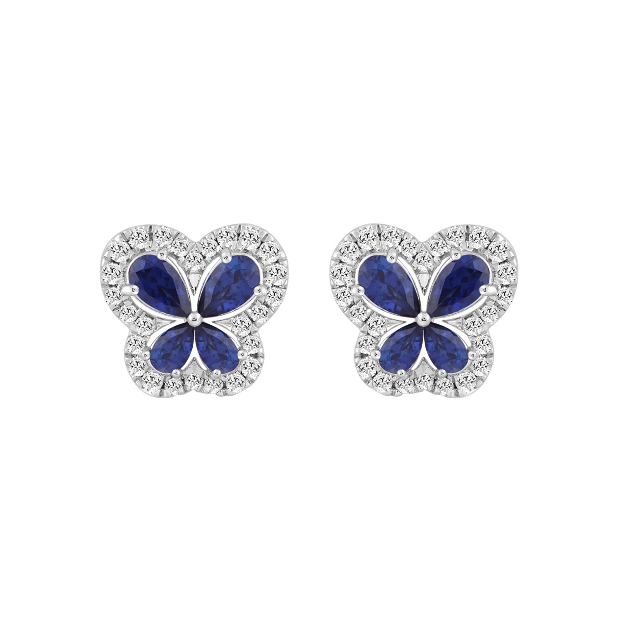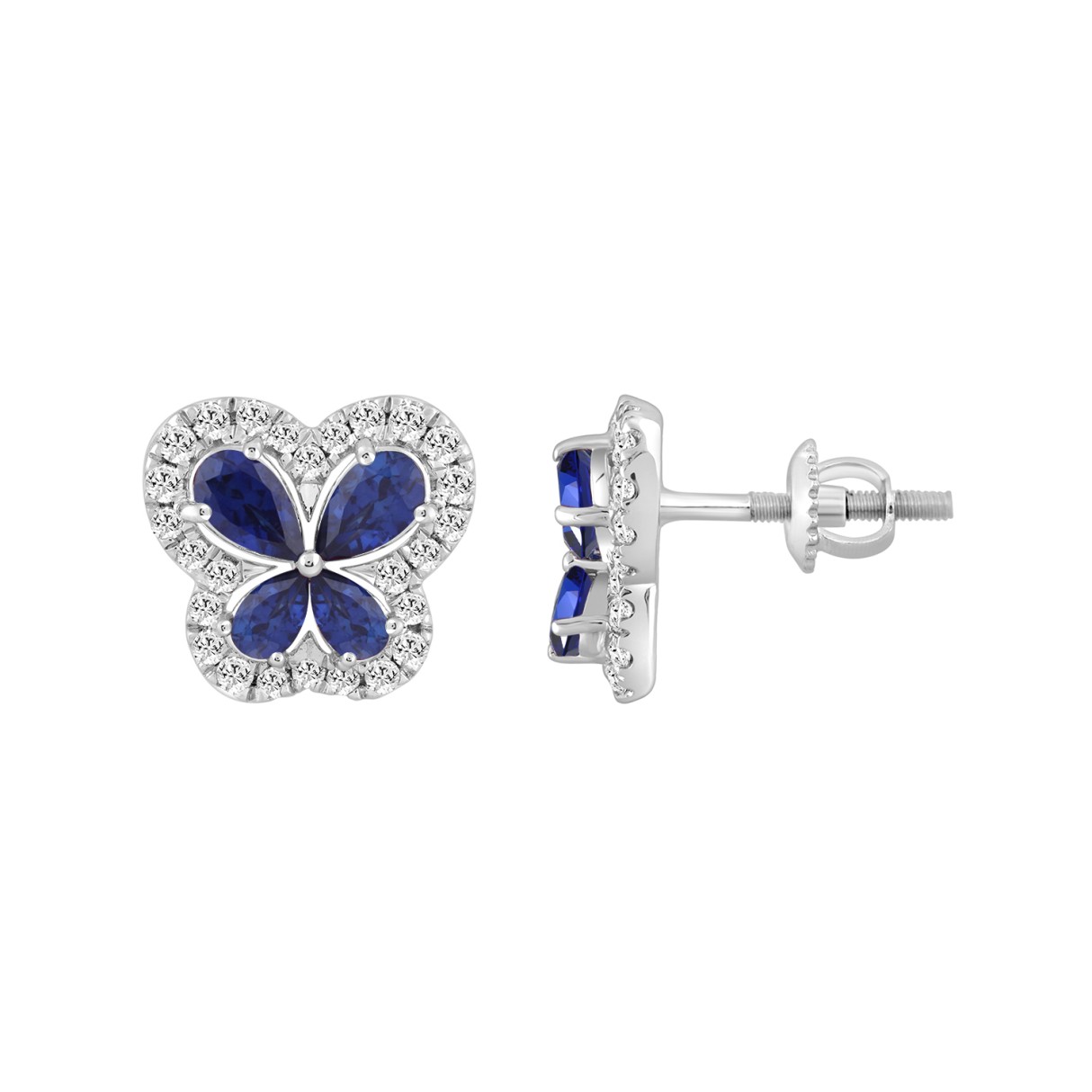 14K WHITE GOLD 1 1/2CT ROUND DIAMOND LADIES EARRINGS (PEAR BLUE SAPPHIRE 8 STONE)