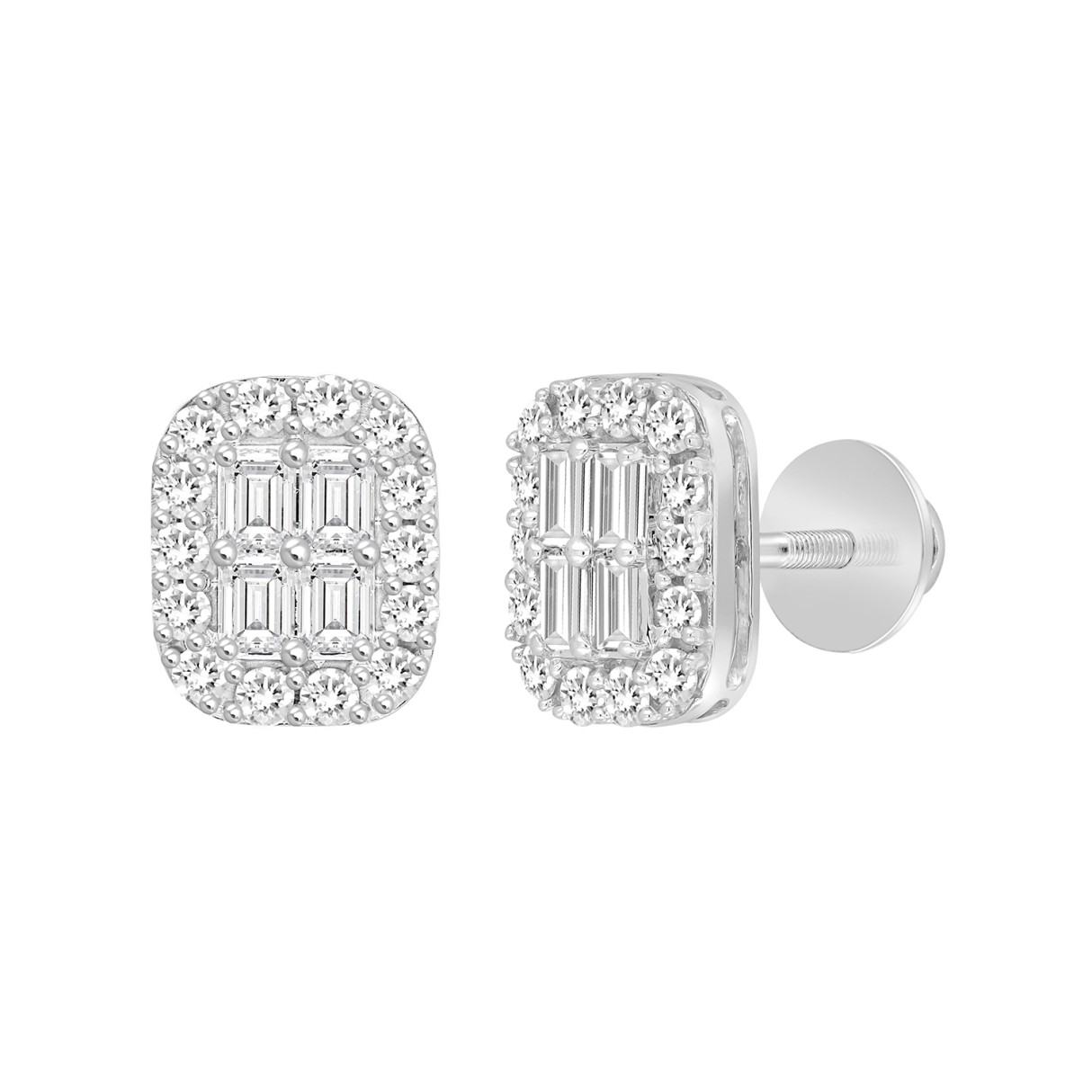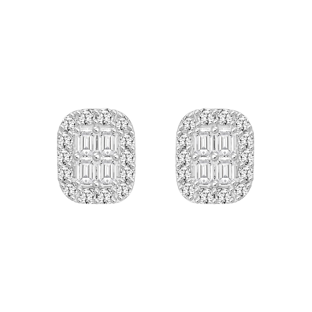 Sterling Silver White 0.15CT Round Diamond Yuva Square Cluster Earrings Women’S Fine Jewelry