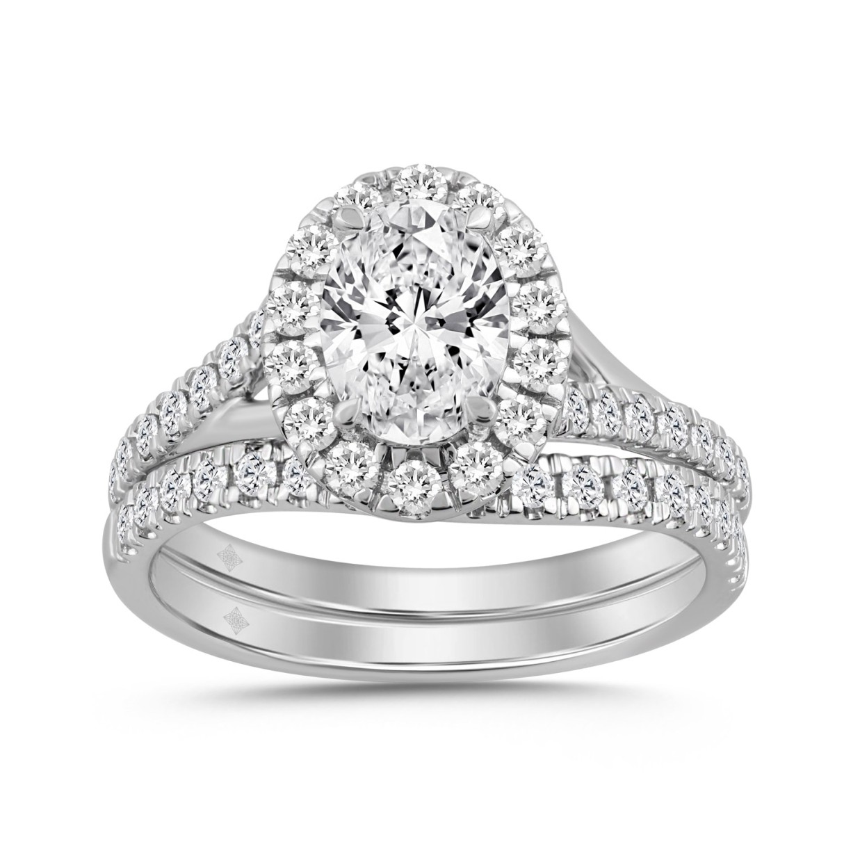 14K WHITE GOLD 1 1/2CT ROUND/OVAL DIAMOND LADIES BRIDAL SET