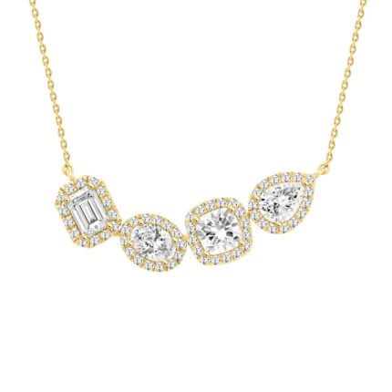 LADIES NECKLACE WITH CHAIN 3 1/2CT ROUND/PEAR/OVAL/COUSHION/EMERALD DIAMOND 14K YELLOW GOLD