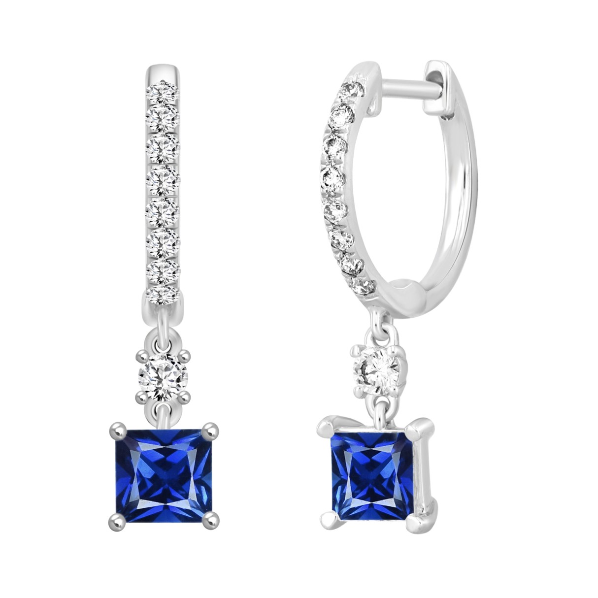 14K WHITE GOLD 1 1/4CT ROUND DIAMOND LADIES EARRINGS (BLUE SAPPHIRE PRINCESS 2 STONE)