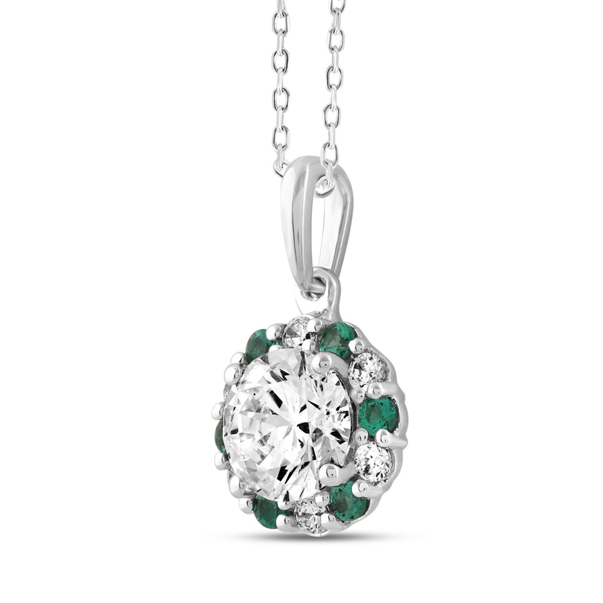 14K WHITE GOLD 1 1/4CT ROUND/GREEN DIAMOND LADIES PENDANT (CENTER STONE ROUND DIAMOND 1CT)
